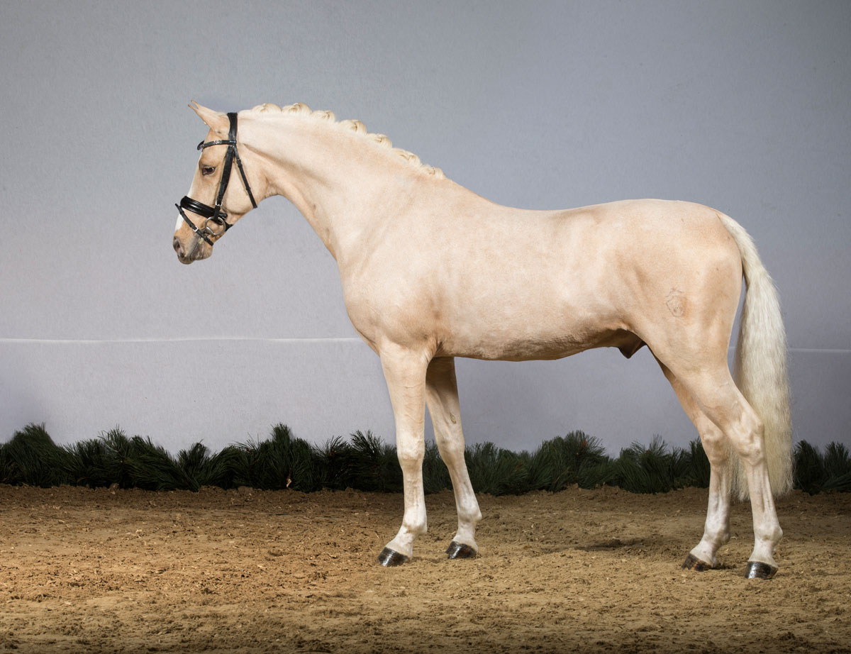 Ein bewegungsgigantischer Reservesieger mit Spitzenwerten in allen Grundgangarten. Er begeistert durch seinen elastischen und stets bergauf vorgetragenen Trab und Galopp, jederzeit unter den Schwerpunkt fußend – perfekt in Szene gesetzt mit unglaublicher Übersicht und Coolness in allen Situationen. Genialer Schritt und überdurchschnittliches Freispringen runden die Spitzenwerte des Youngsters ab. Global Player AT – typvoll – harmonisch konstruiert, mit Spitzenwerten in Bewegung und Dynamik. Überragende Rittigkeitswerte.